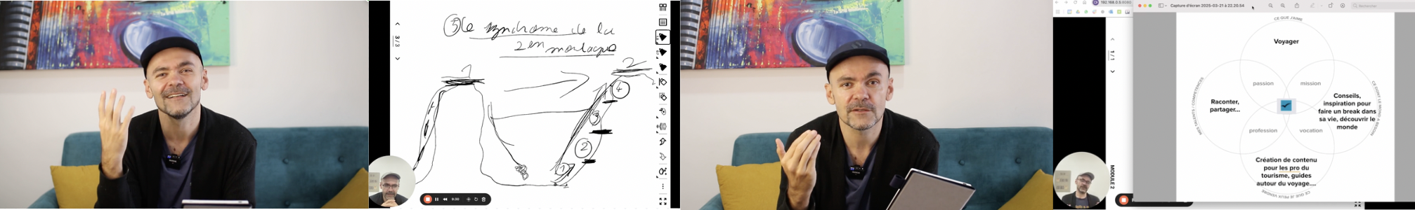 Je t’explique les concepts en mode tableau blanc, avec des vidéos face cam.